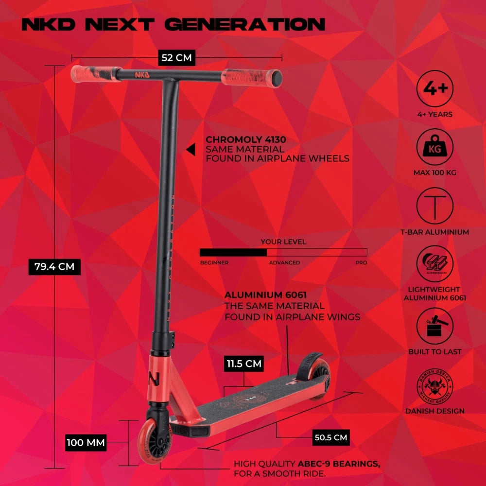 NKD Next Generation 2025 V2 Stuntstep 82cm / 79.5 cm  Rood Zwart